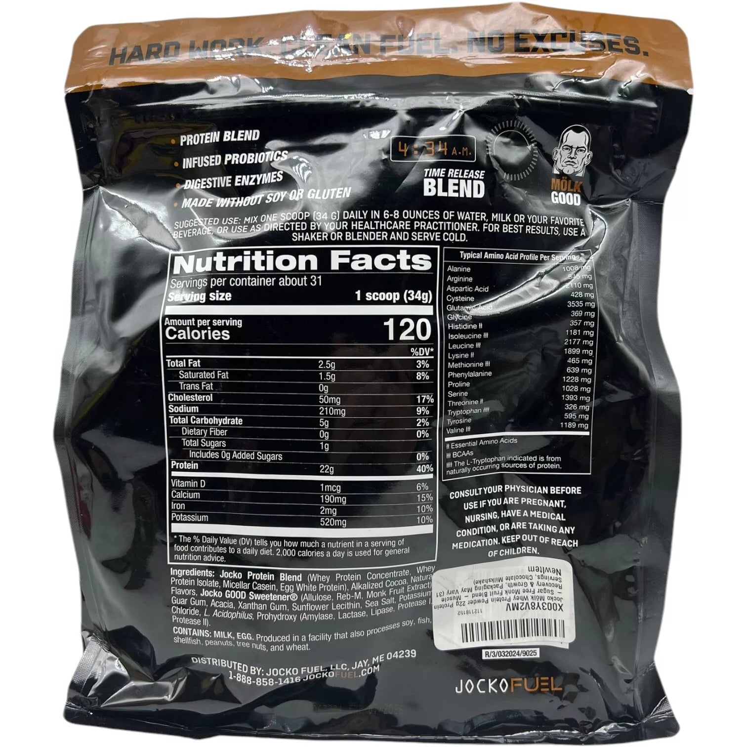 Jocko MOLK Whey Protein Blend Powder 22g - 2 lb Bags Chocolate